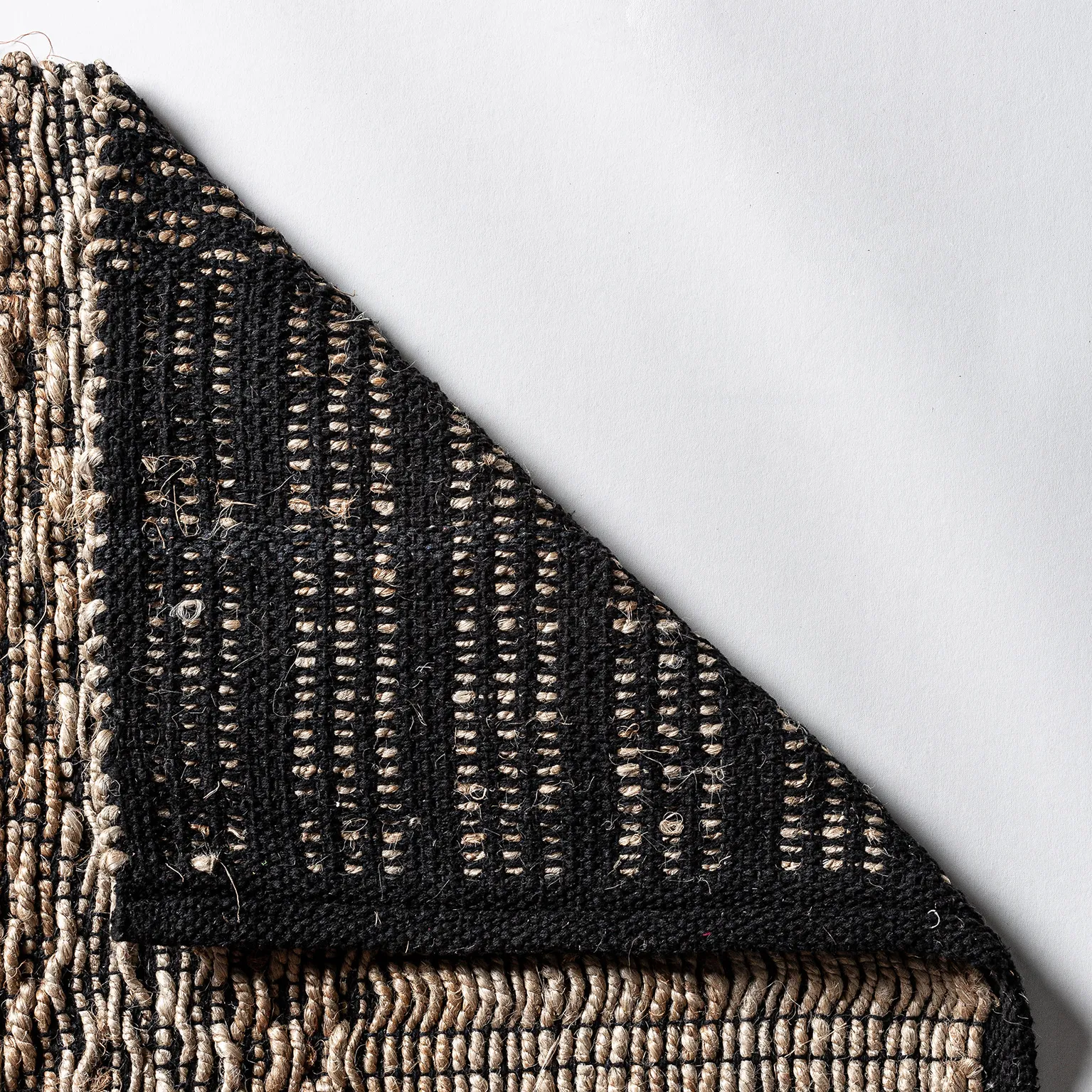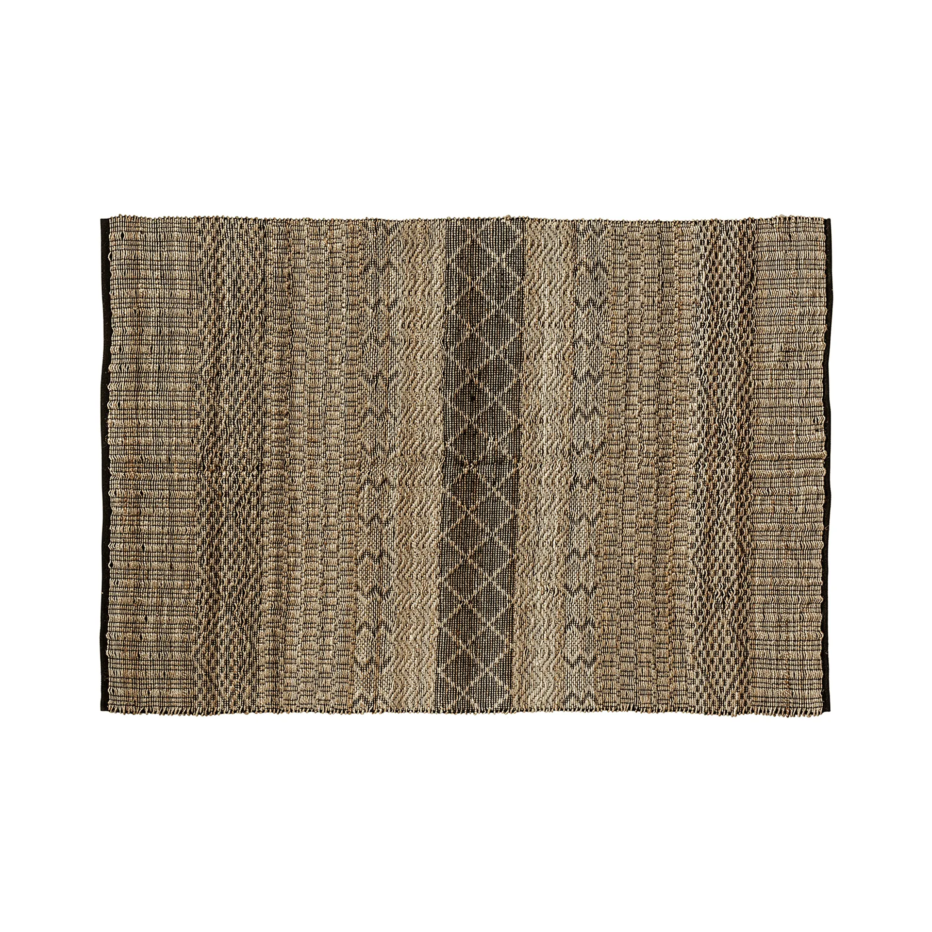 Alfombra Kelia de estilo vintage, fabricado en algodón en color negro, combinado con cáñamo en color natural.