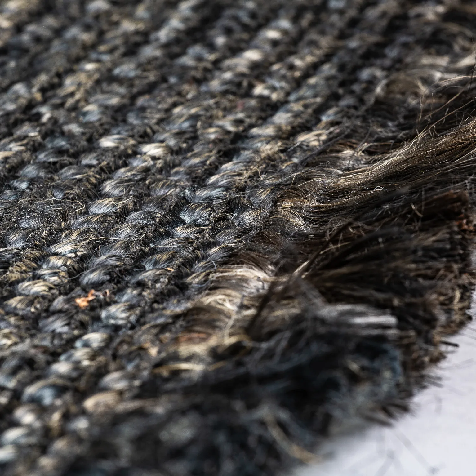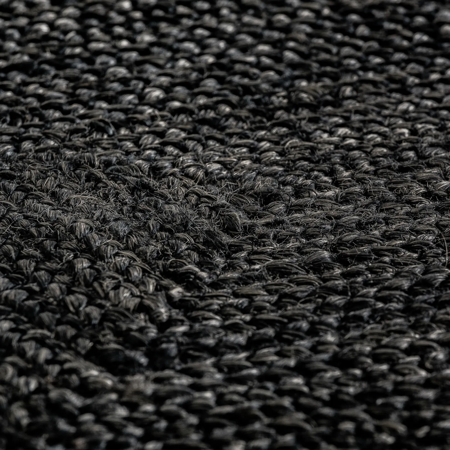 Alfombra Kisai de estilo colonial, fabricado en yute en color negra con acabado teñido.