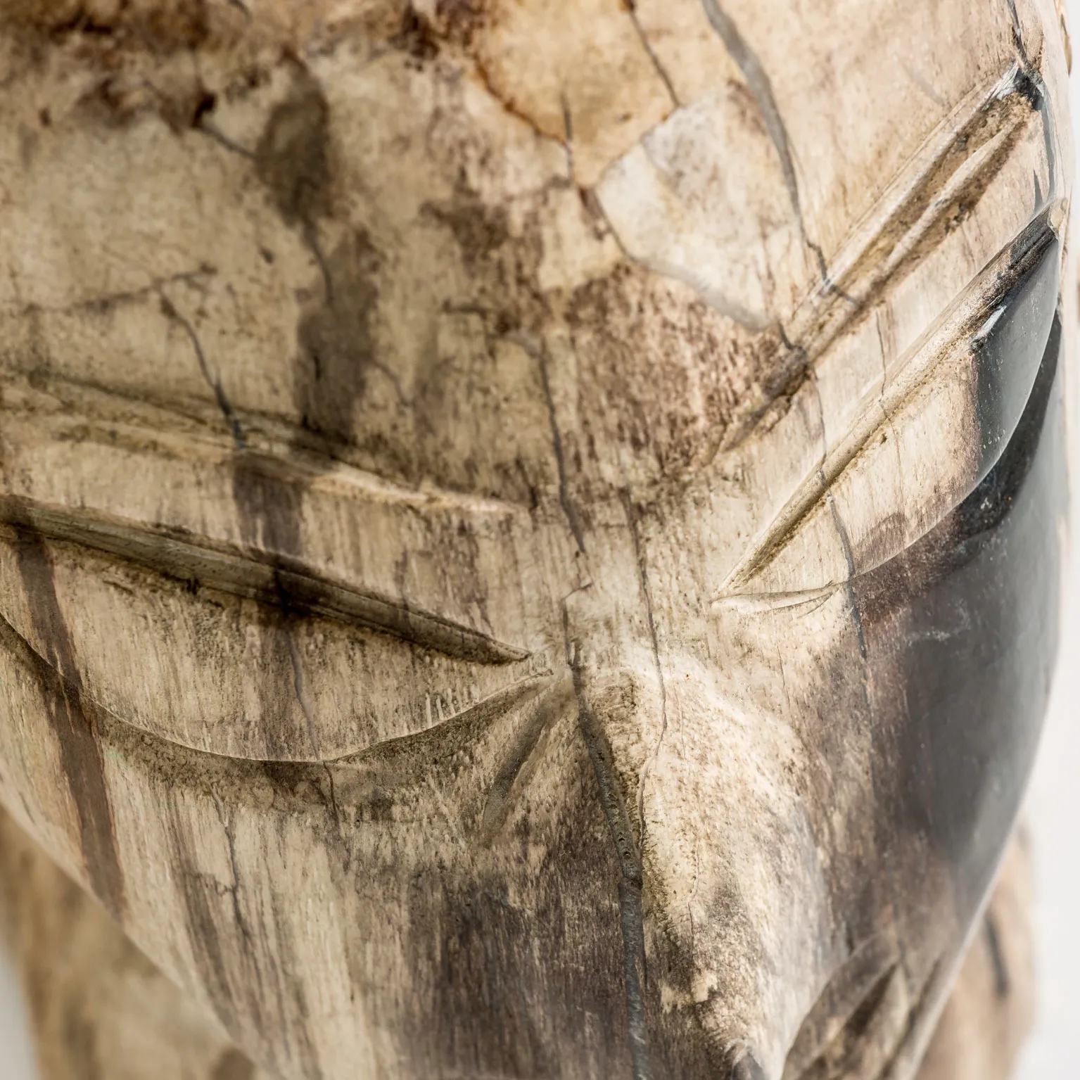 Busto Belle de estilo étnico, fabricado en madera petrificada en color marrón con acabado envejecido en color negro con acabado envejecido.