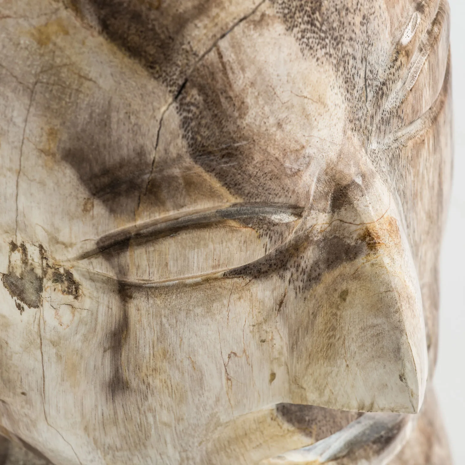 Busto Robin de estilo étnico, fabricado en madera petrificada en color marrón con acabado envejecido.