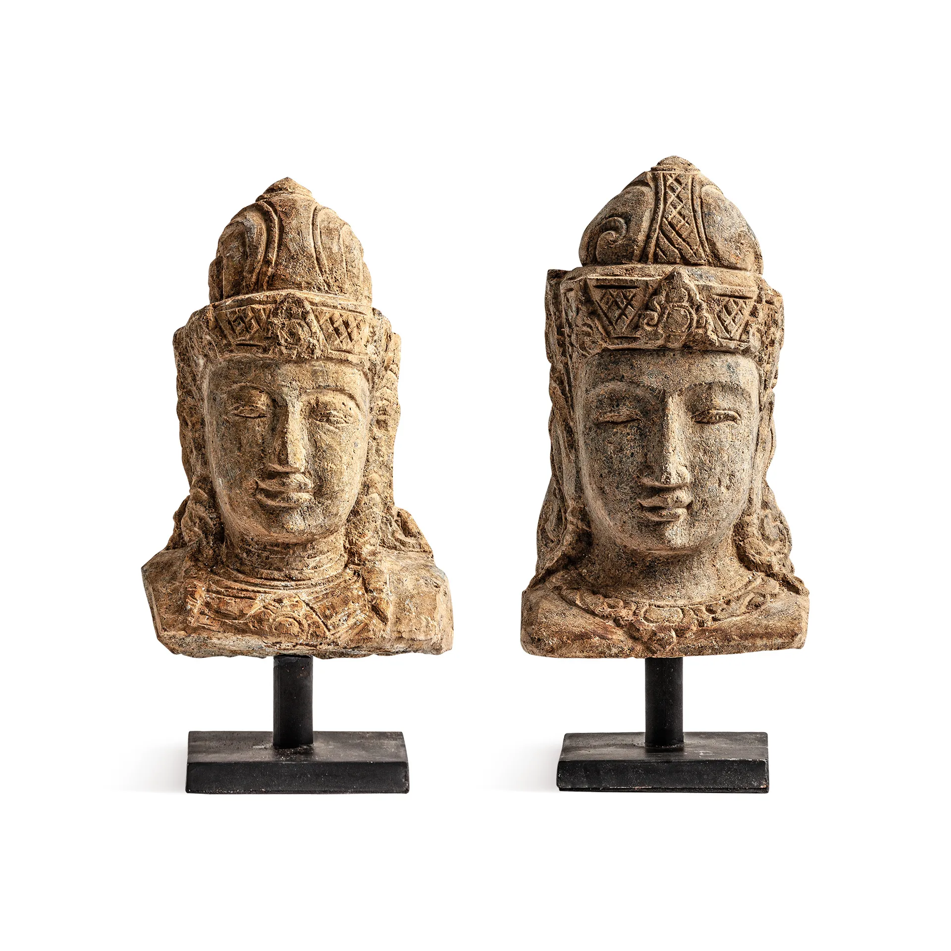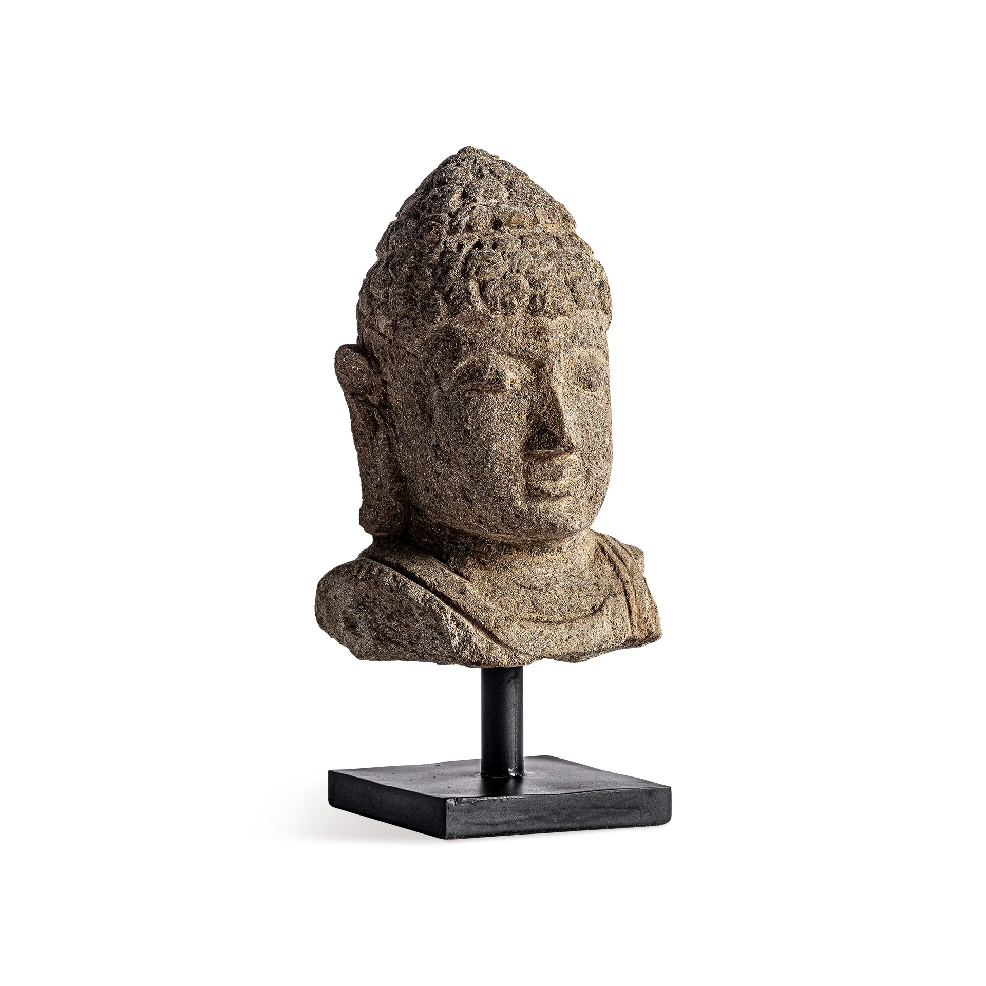 Busto Thailandés de estilo oriental, fabricado en piedra en color marrón con acabado envejecido.