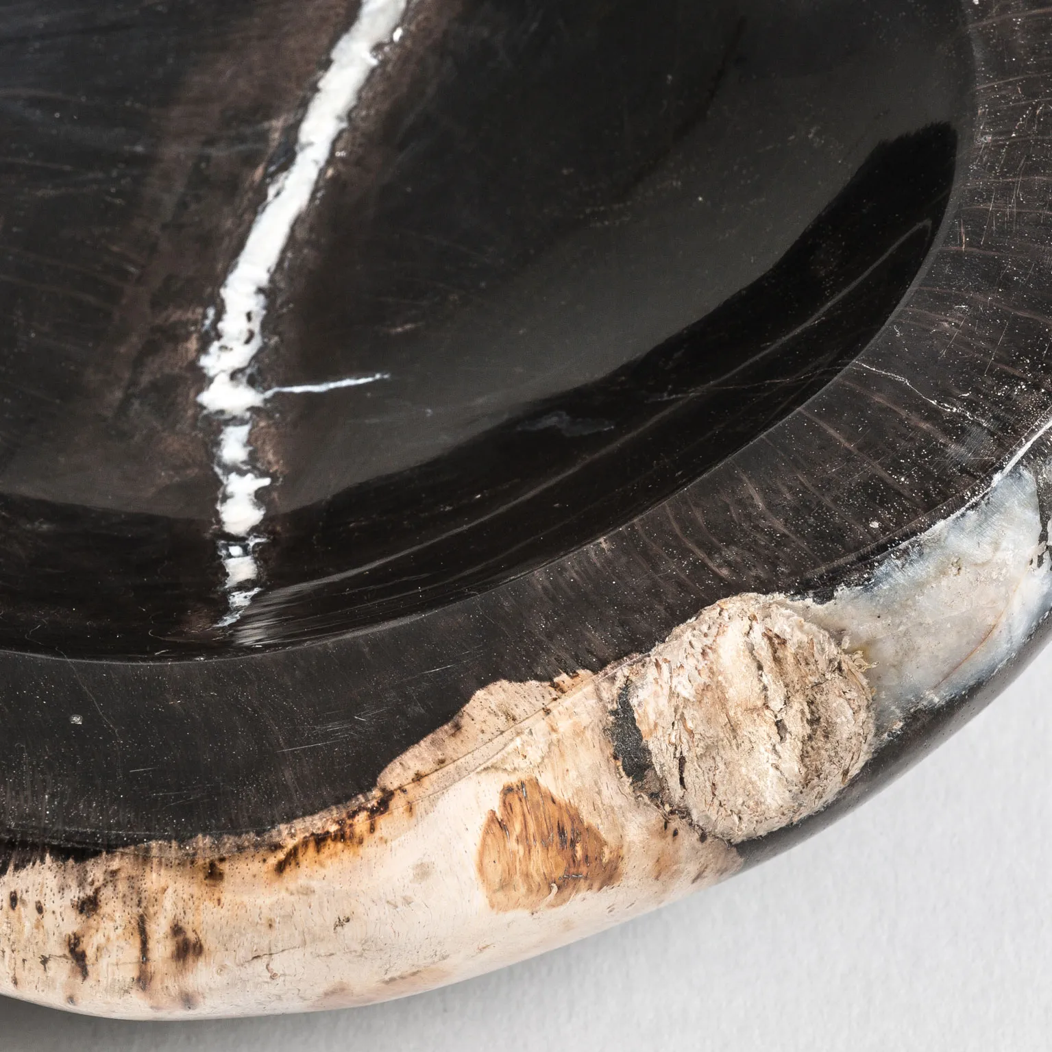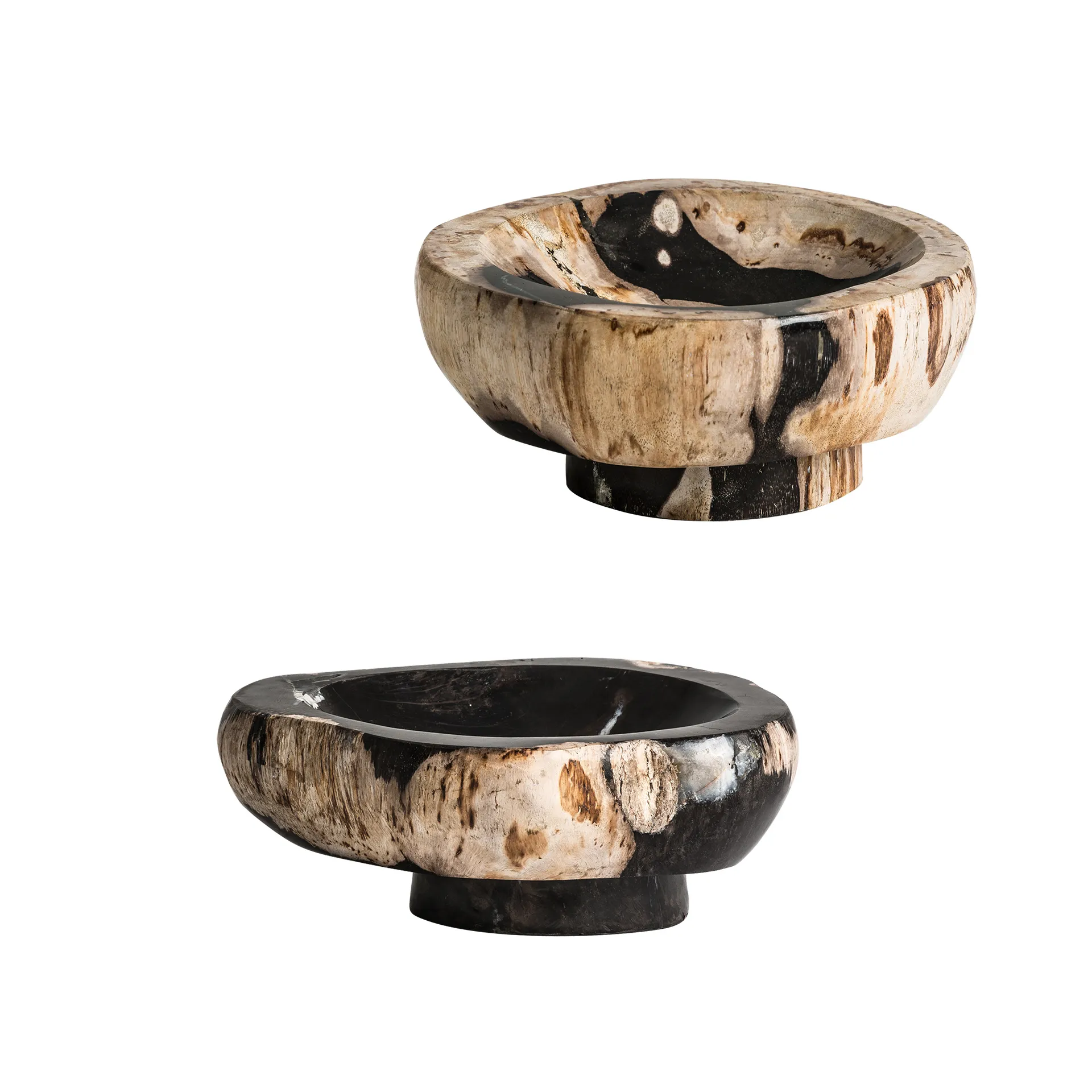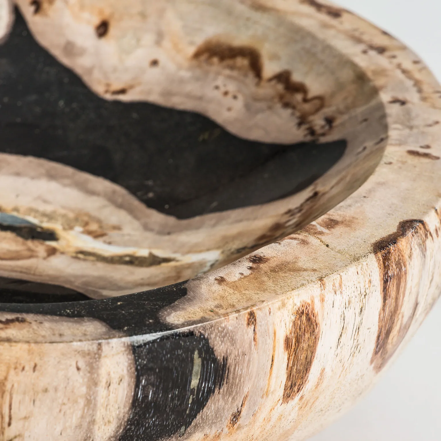 Cuenco Yui de estilo étnico, fabricado en madera petrificada en color tonos en marrón con acabado envejecido.