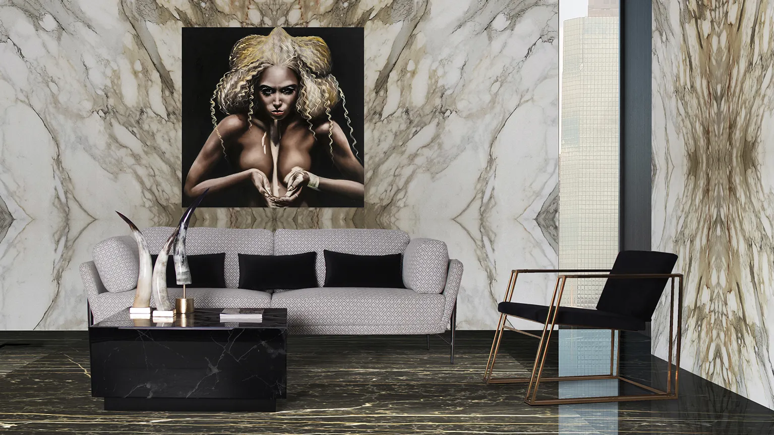 Figura decorativa Zonza de estilo nórdico, fabricado en resina en color negro, combinado con aluminio en color gris.