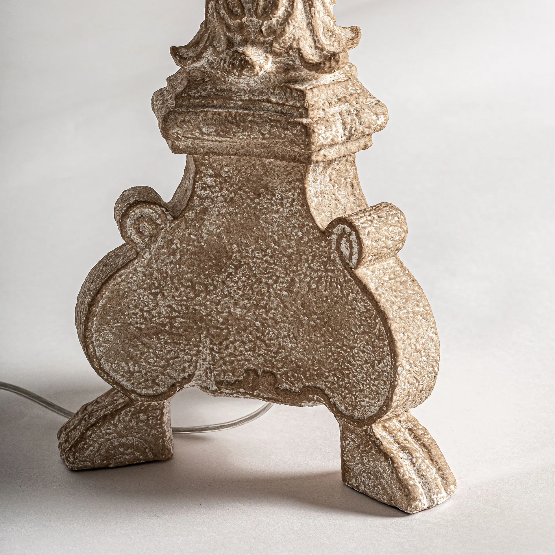 Lámpara de sobremesa Henten de estilo provenzal, fabricado en resina en color marrón, combinado con algodón en color beige. Producto desmontable.