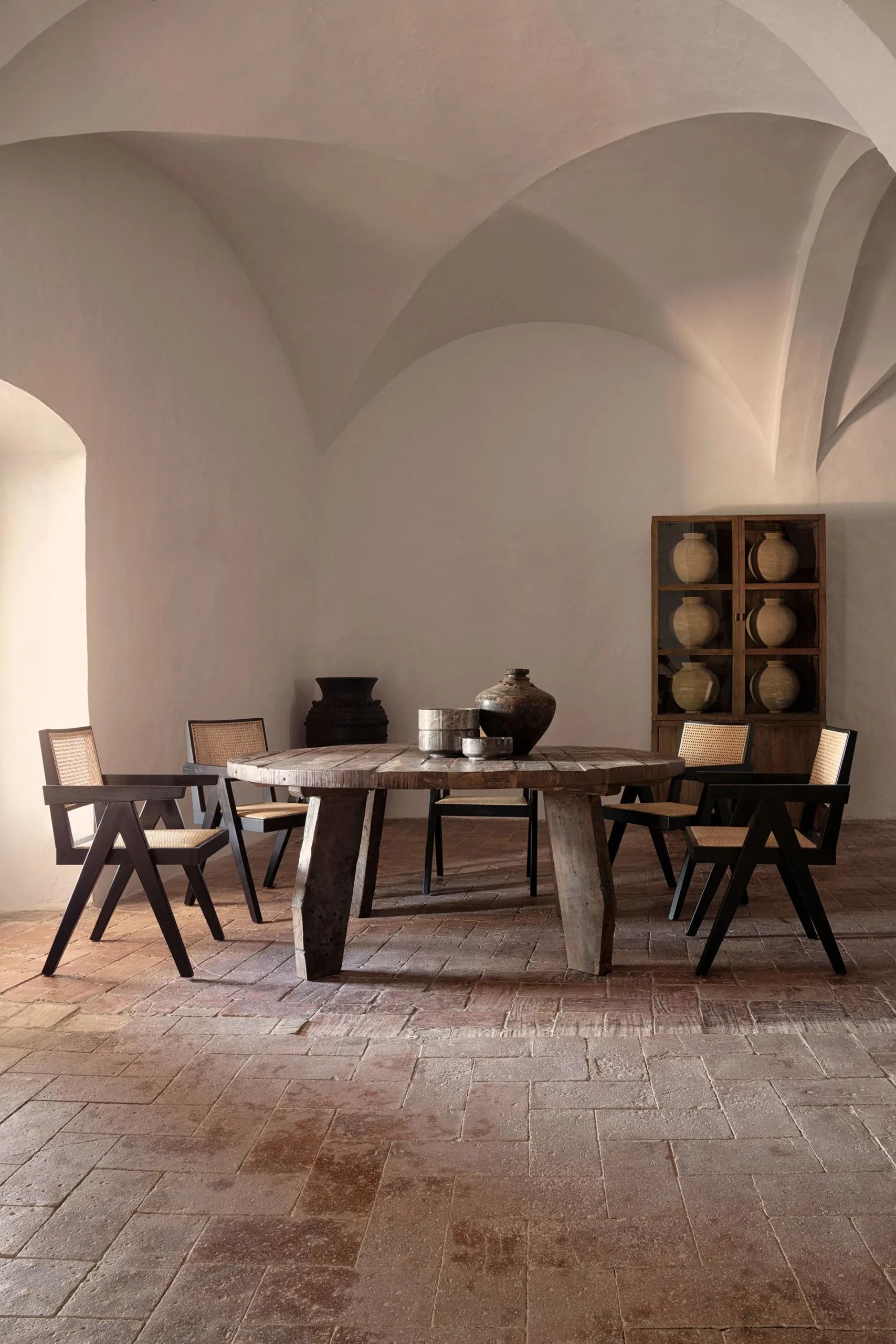 Mesa comedor Hassi de estilo étnico, fabricado en madera de mango en color marrón con acabado envejecido. Producto desmontable.