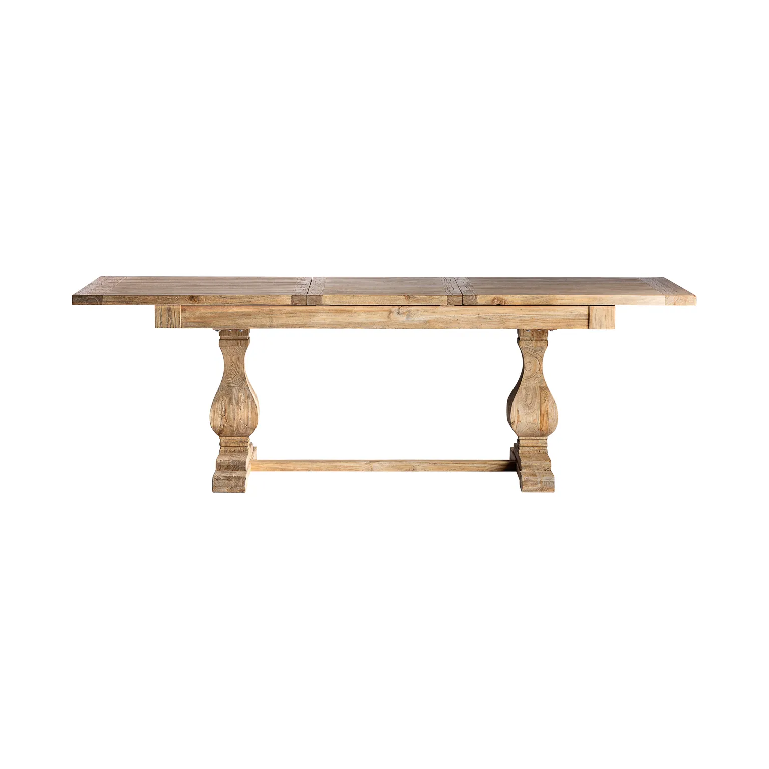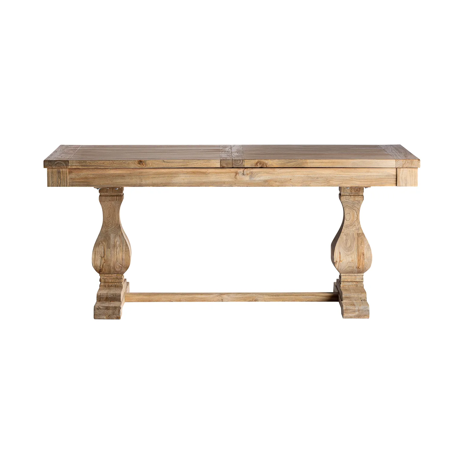 Mesa extensible Berca de estilo clásico, fabricado en madera de olmo reciclado en color marrón. Madera proveniente de antiguas puertas por lo que puede haber imperfecciones. . Producto desmontable, extensible.