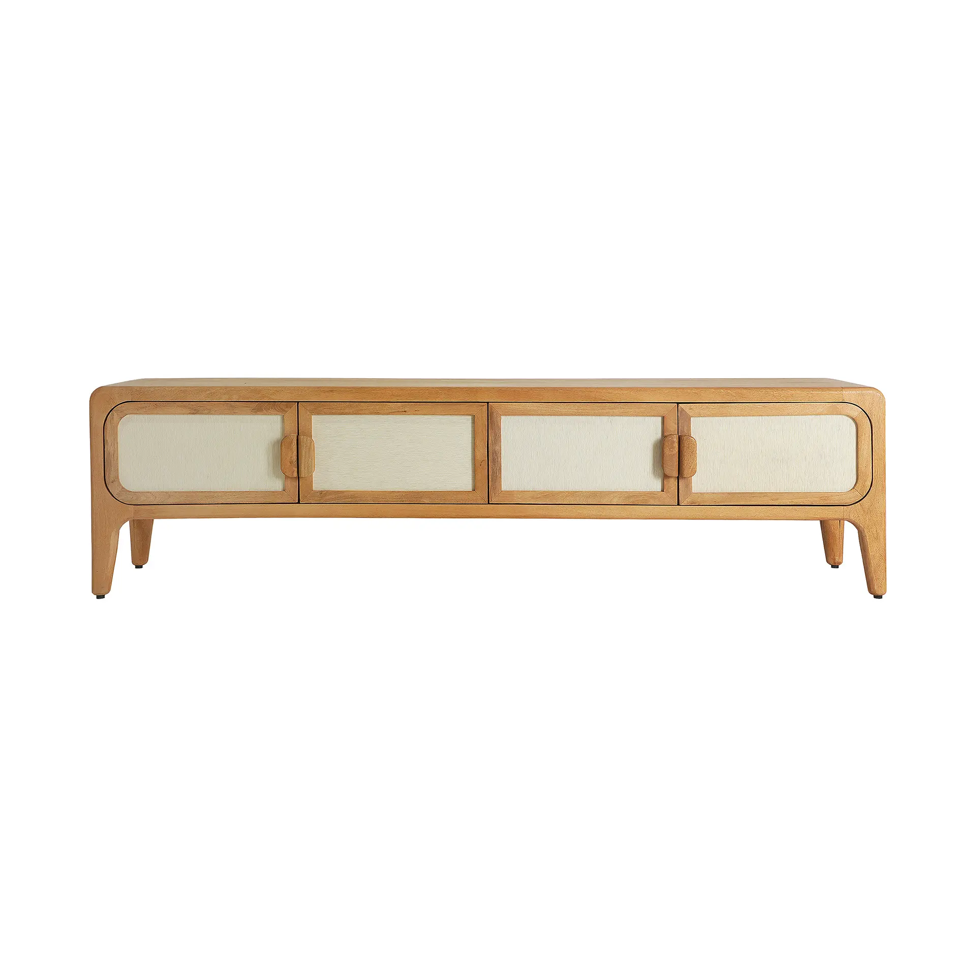 Mueble tv lattes, fabricado con madera de mango en color marrón.