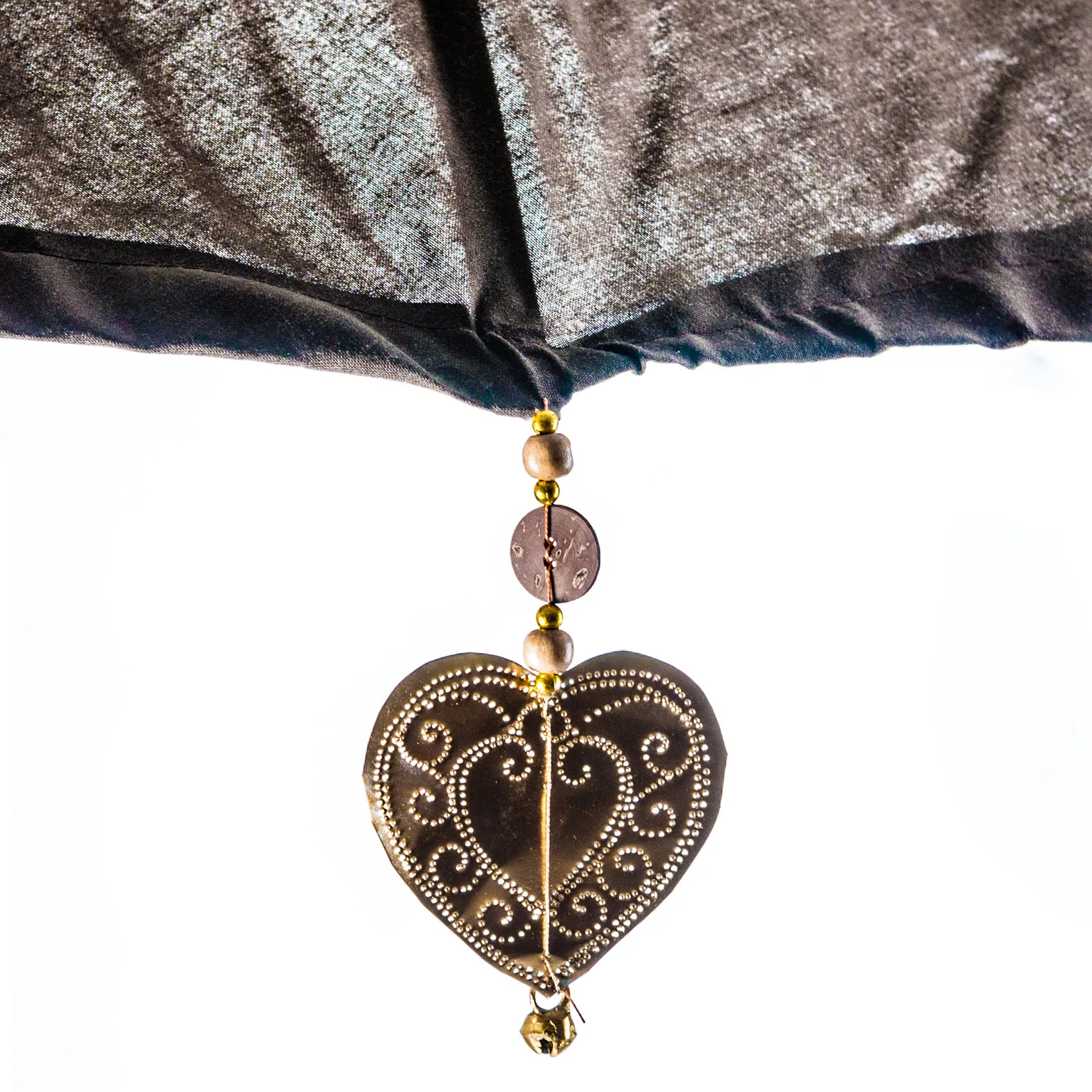 Sombrilla Gela de estilo shabby chic, fabricado en madera mindi en color marrón, combinado con loneta. Producto plegable.